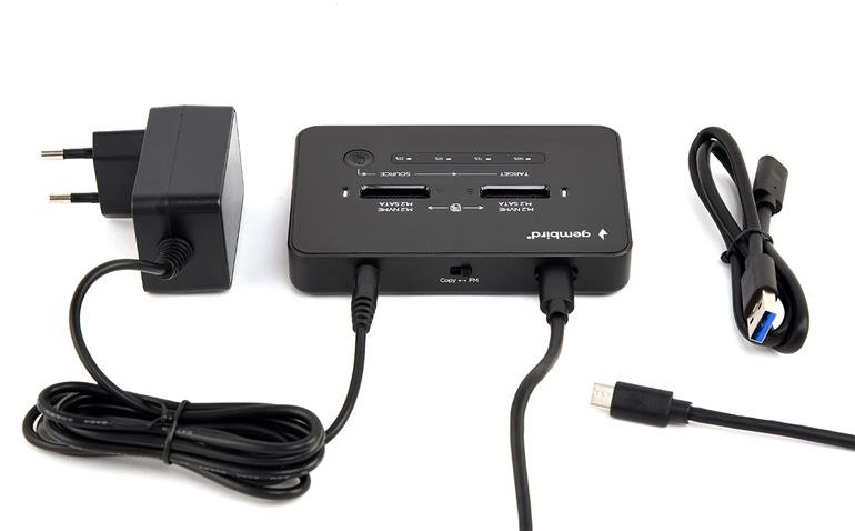 Funkce offline klonování: NVMe na NVMe až 900 MBps nebo SATA na SATA až 300 MBps (s napájecím adaptérem)