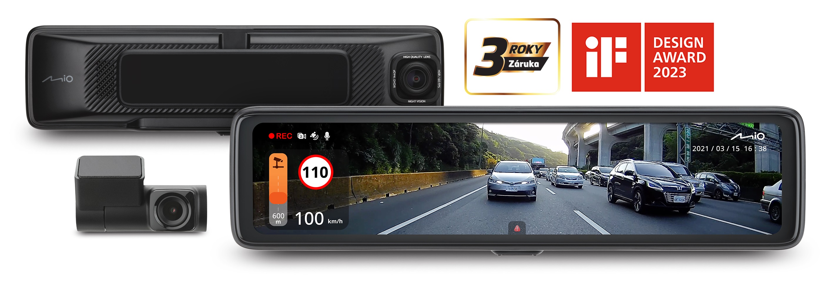 2.5K 1440P HDR přední a 1080P HDR zadní kamera