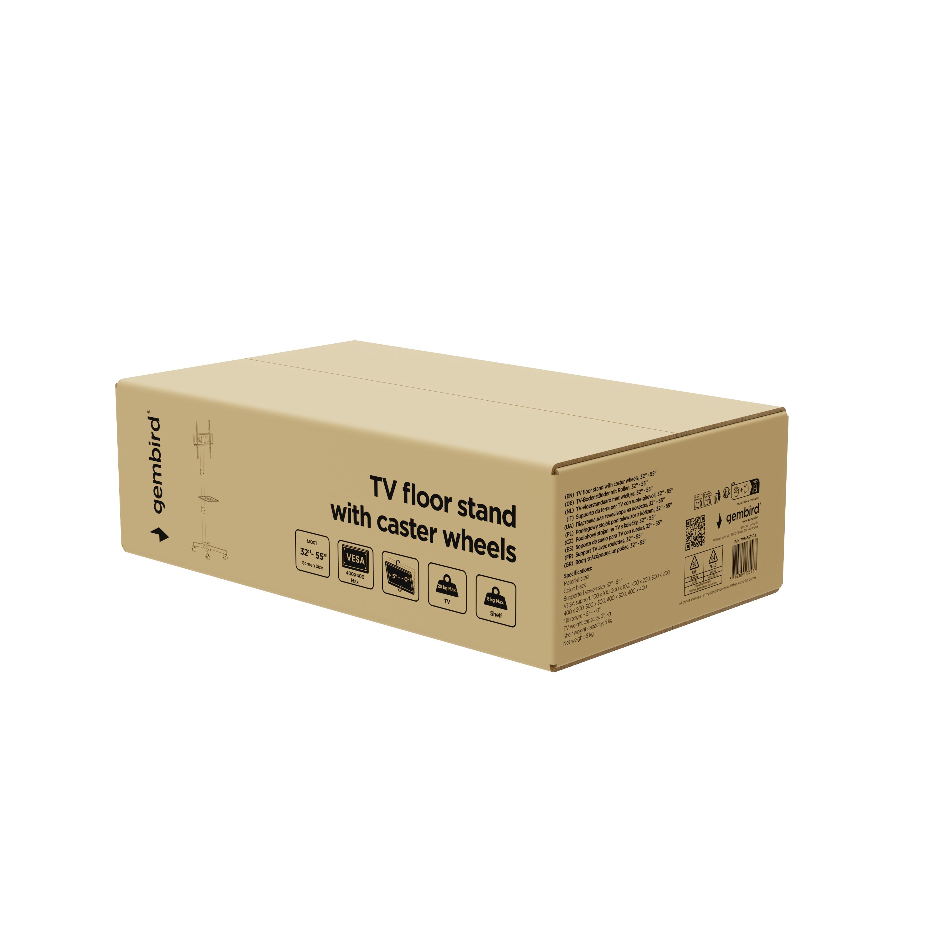 TV stojan s kolečky (naklápěcí), 32“ - 55“, černý